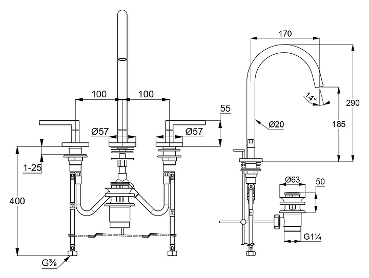 Смеситель для раковины KLUDI Nova Fonte 201430515 на 3 отверстия, хром