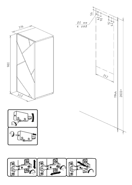 Шкаф подвесной БРИКЛАЕР Кристалл 90 35,2х90 белый