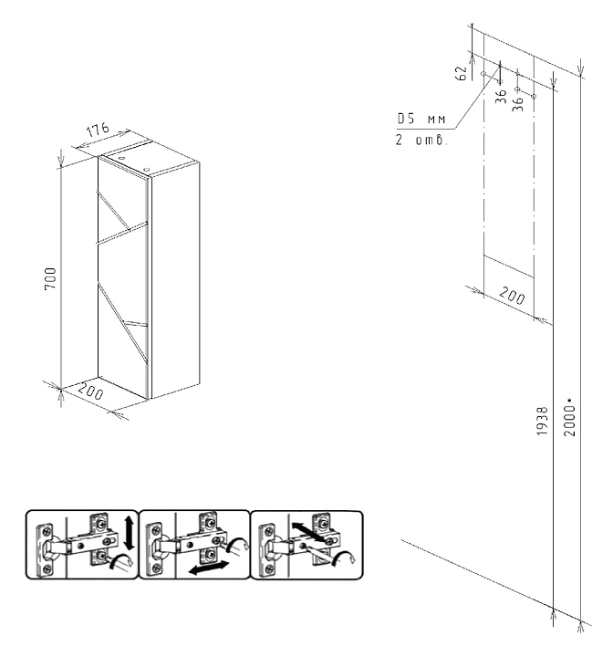 Шкаф подвесной БРИКЛАЕР Кристалл 20 20х70 с дверью, белый