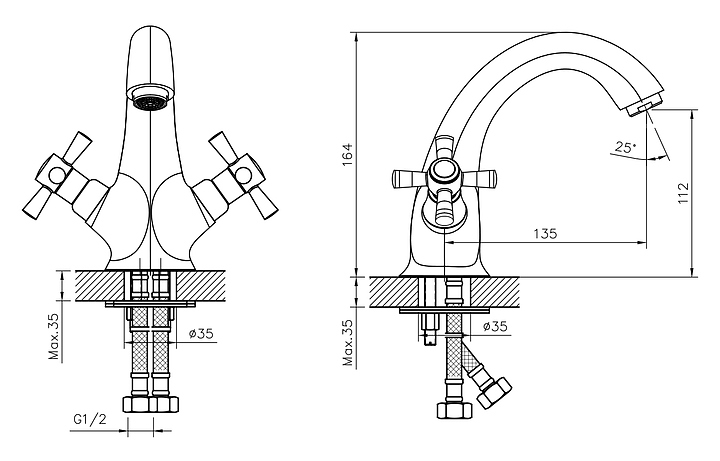 Смеситель Decoroom DR51011 предназначен для использования в санитарно-технических помещениях для подачи горячей и холодной воды. Изделие выполнено из металла, который отличается прочностью, долговечностью и устойчивостью к перепадам температур. Особенности: