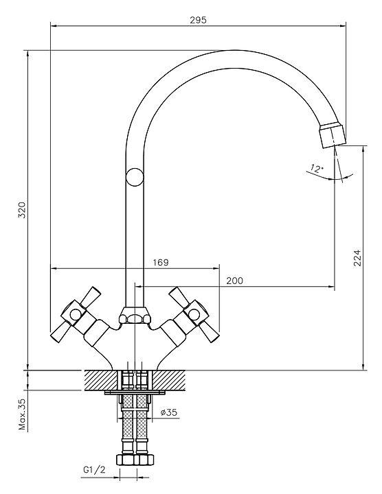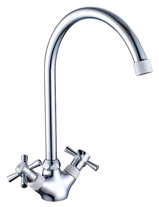 Смеситель Decoroom DR51028 предназначен для использования на кухне для подачи горячей и холодной воды. Модель оснащена удобными вентилями и высоким поворотным изливом. Изделие выполнено из металла, который отличается прочностью, долговечностью и устойчивостью к перепадам температур. Особенности: