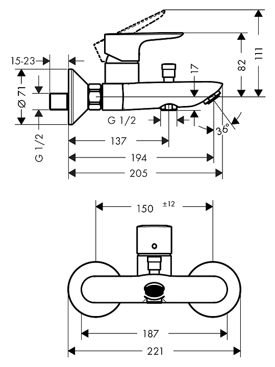 Смеситель для ванны и душа Hansgrohe Talis E 71740140