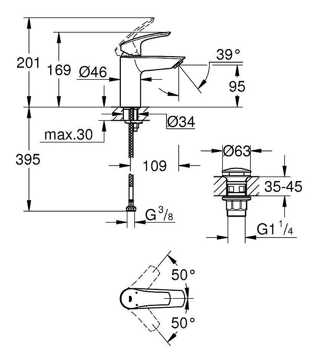 Смеситель для раковины Grohe Eurosmart 23922003 предназначен для подачи горячей и холодной воды в ванных помещениях. Модель оснащена донным клапаном Push Open и керамическим картриджем, обеспечивающим плавный ход рычага смесителя, контроль и точность при выборе напора и температуры воды. Смеситель отличается простой установкой благодаря системе быстрого монтажа и оснащен ограничителями расхода и температуры воды. Раздельные пути подачи воды не содержат никеля и свинца, что гарантирует безопасность во время эксплуатации. Изделие выполнено из латуни, которая отличается прочностью, долговечностью и устойчивостью к перепадам температуры. Дополнительные характеристики: