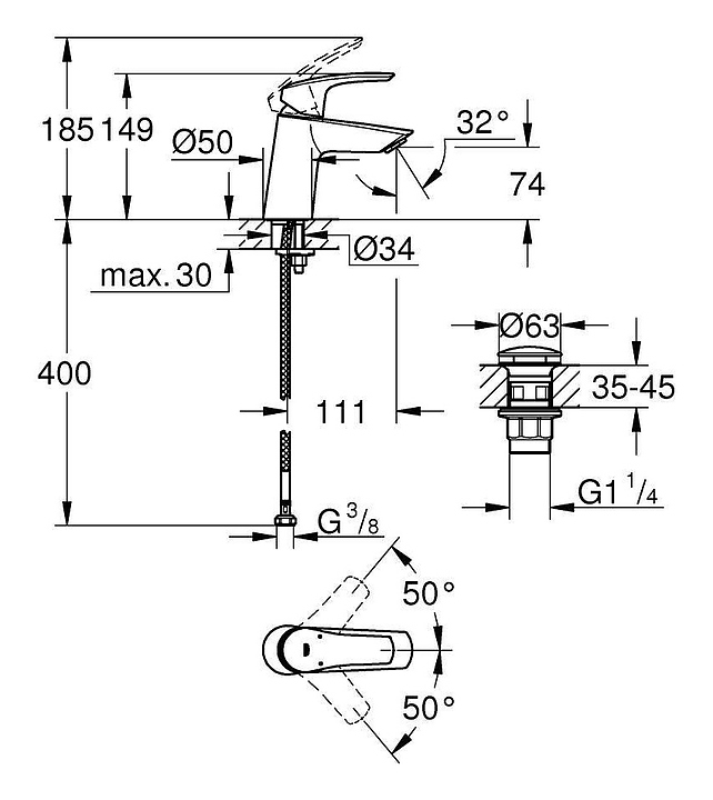 Смеситель для раковины Grohe Eurosmart 23968003 предназначен для подачи горячей и холодной воды в ванных помещениях. Модель оснащена донным клапаном Push Open и керамическим картриджем, обеспечивающим плавный ход рычага смесителя, контроль и точность при выборе напора и температуры воды. Смеситель отличается простой установкой благодаря системе быстрого монтажа и оснащен ограничителями расхода и температуры воды. Раздельные пути подачи воды не содержат никеля и свинца, что гарантирует безопасность во время эксплуатации. Изделие выполнено из латуни, которая отличается прочностью, долговечностью и устойчивостью к перепадам температуры. Дополнительные характеристики: