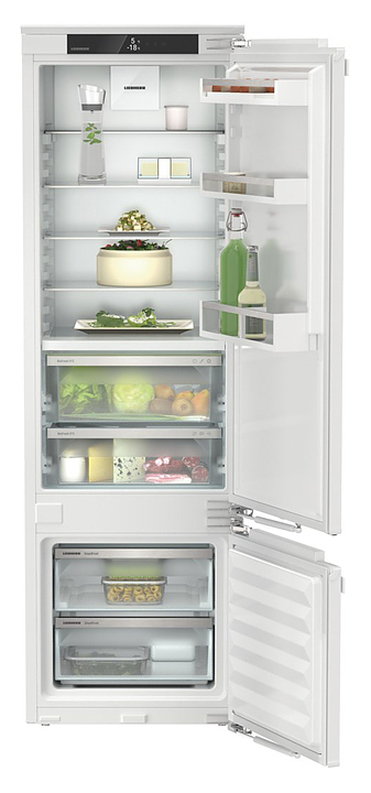 Встраиваемый холодильник Liebherr ICBd 5122 Plus BioFresh класса Comfort предназначен для заморозки, охлаждения и длительного хранения продуктов и полуфабрикатов в частных домах, квартирах, отелях и офисах. Модель оснащена сенсорным экраном, индикаторами температуры в холодильном и морозильном отделении, фильтром с активированным углем и дверцей со сменным уплотнителем. Задняя стенка выполнена из нержавеющей стали, полки на двери - из пластмассы, полки в холодильном и морозильном отделениях - из стекла, дверь - из стали.