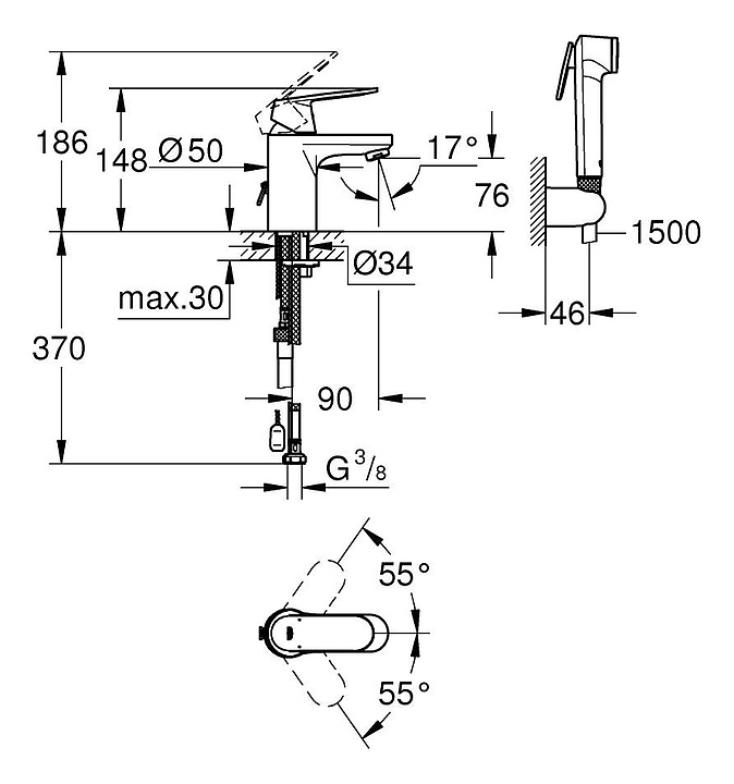 Смеситель для раковины Grohe Eurosmart Cosmopolitan 23125000 с гигиеническим душем
