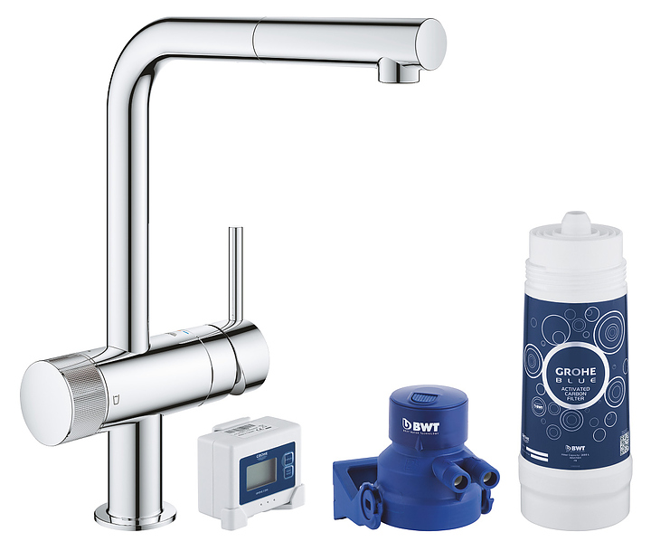 Смеситель Grohe Blue Pure Minta 30382000 предназначен для установки на кухонную мойку и оснащен более длинным изливом. Однорычажный тип управления позволяет быстро и плавно регулировать подачу воды одной рукой. Модель оснащена отдельным вентилем для подачи фильтрованной воды и керамическим картриджем, обеспечивающим плавный ход рычага смесителя, контроль и точность при выборе напора и температуры воды. Потоки фильтрованной и нефильтрованной воды изолированы и не смешиваются. Изделие выполнено из латуни, отличающейся прочностью, долговечностью и устойчивостью к перепадам температур. В комплект поставки входят фильтр на основе активированного угля и 2 батарейки АА. Особенности: