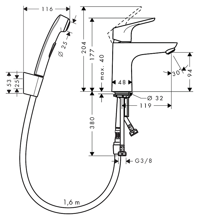 Смеситель для раковины с гигиеническим душем Hansgrohe Focus 31927000