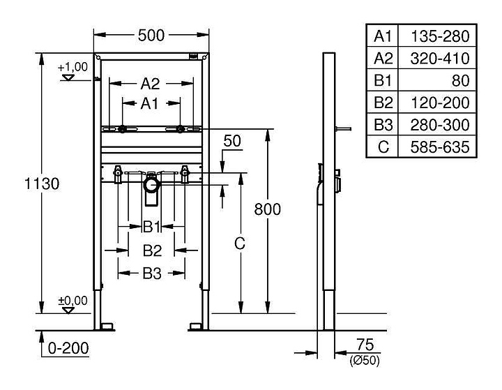 Инсталляция Grohe Rapid SL 38554001 предназначена для установки подвесных раковин. Дополнительные характеристики: