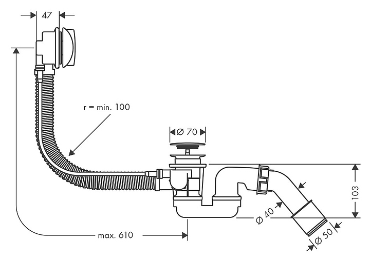 Слив-перелив Hansgrohe Flexaplus 58143000 предназначен для установки с ваннами. Изделие выполнено из пластика. Особенности: