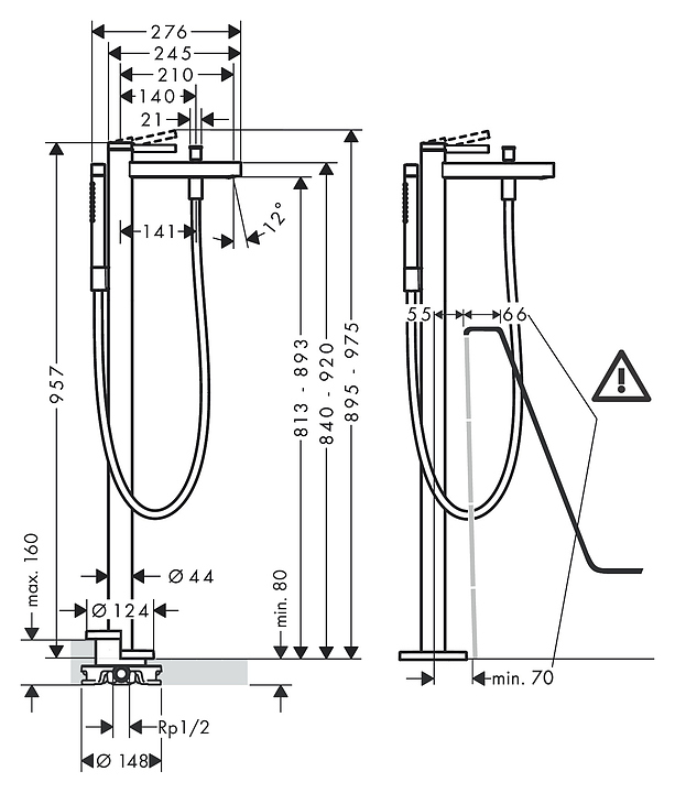 Смеситель для ванны и душа напольный Hansgrohe Finoris 76445000