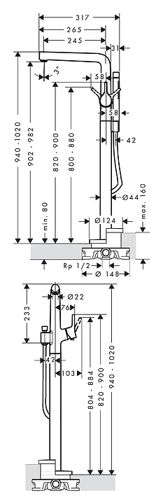 Смеситель для ванны и душа напольный Hansgrohe Talis S 72412000
