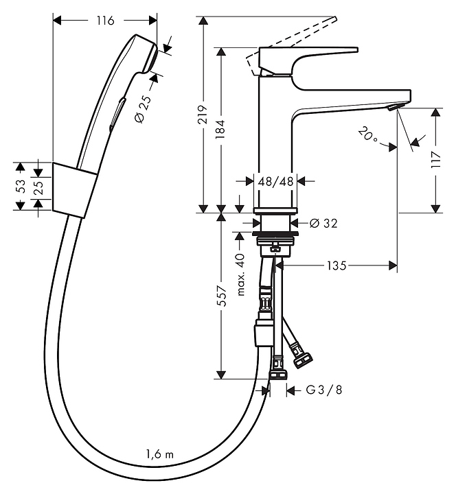 Смеситель для раковины с гигиеническим душем Hansgrohe Metropol 74522000
