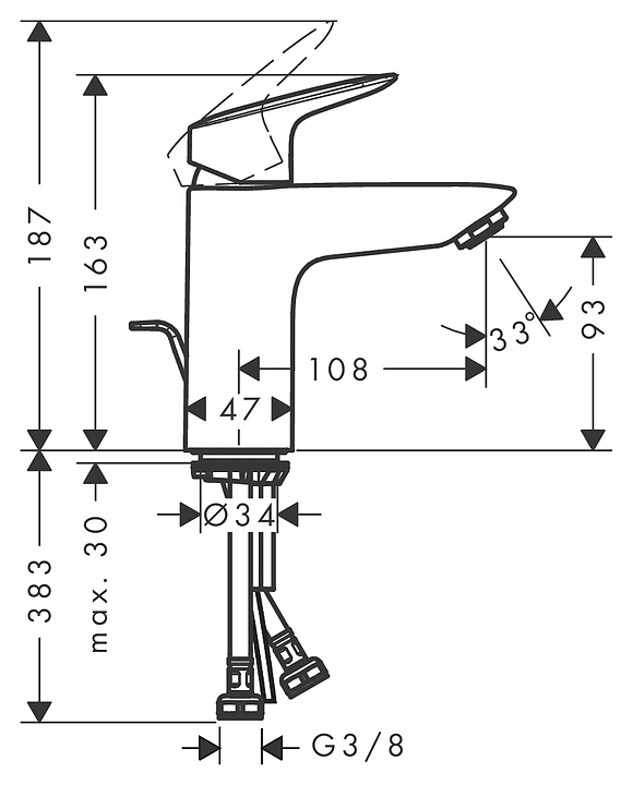 Смеситель для раковины Hansgrohe Logis 71102000 CoolStart, со сливным гарнитуром