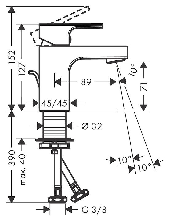 Смеситель для раковины Hansgrohe Vernis Shape 71560000 со сливным гарнитуром