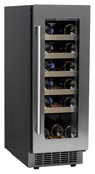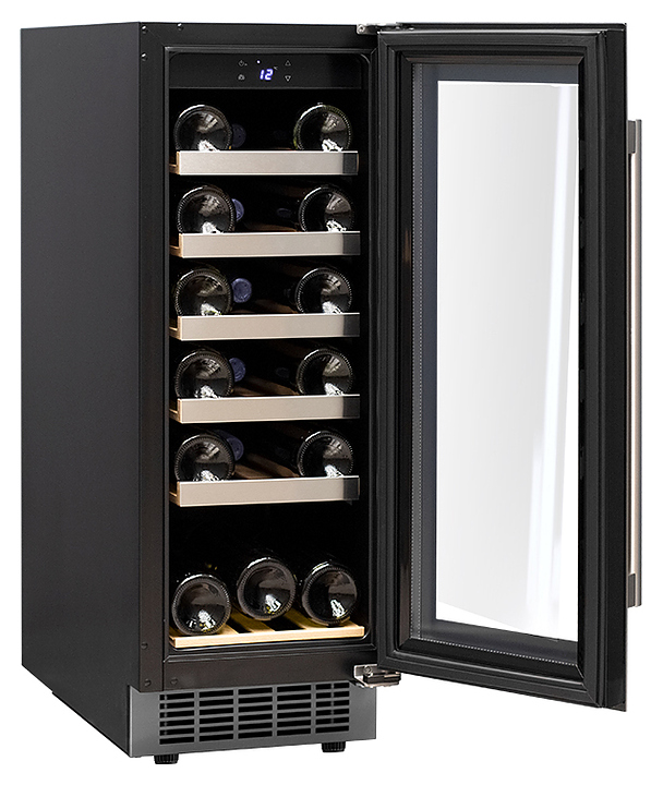 Винный шкаф MEYVEL MV18-KST1 предназначен для демонстрации, хранения и создания оптимальных условий для сохранения всех вкусовых свойств вина в бутылках на предприятиях общественного питания, торговли, в барах, ресторанах, специализированных магазинах, частных домах или квартирах. Модель оснащена сенсорной панелью управления, электронным термостатом и внутренней синей светодиодной подсветкой. Корпус выполнен из окрашенной в черный цвет стали, дверь - из двойного стекла с УФ защитой, полки - из массива бука, рама - из бесшовной нержавеющей стали, ручка - из стали. В комплект поставки входят петли для перенавешивания двери. Особенности: