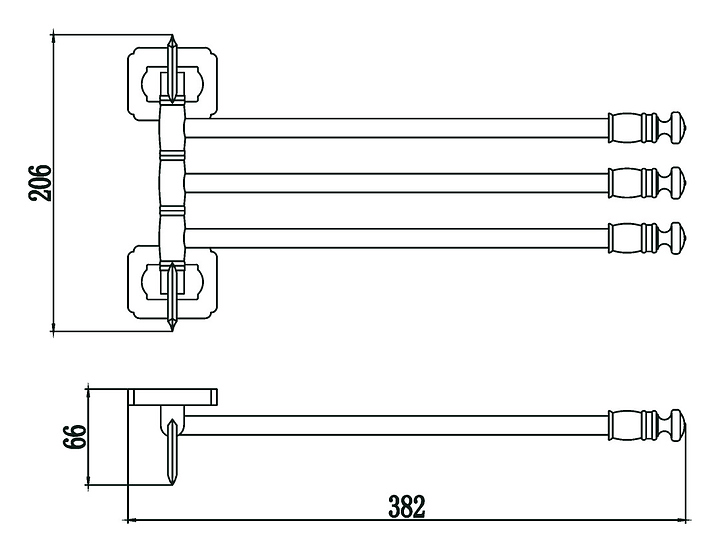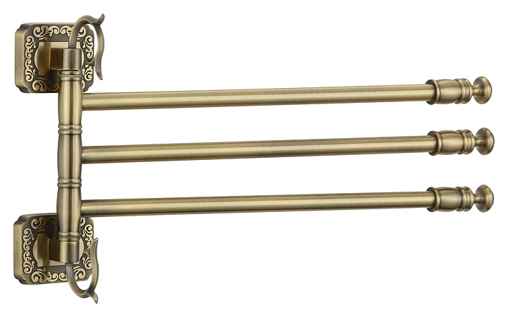 Тройной поворотный держатель Savol S-006403 используется в ванных комнатах для размещения полотенец. Элегантные аксессуары коллекции 64 выполнены в стиле ретро и идеально дополнят дизайн любой ванной комнаты. Модель монтируется на стену с помощью шурупов. Изделие выполнено из латуни, которая отличаются прочностью и долговечностью. Дополнительные характеристики: