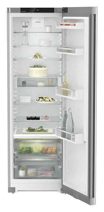 Холодильник Liebherr SRBsfe 5220 предназначен для охлаждения и кратковременного хранения продуктов, полуфабрикатов и напитков в частных домах, квартирах, отелях и офисах. Модель оснащена сенсорным дисплеем, позволяющим осуществлять интуитивно понятную настройку температуры. Боковые стенки выполнены из стали, внутренние полки - из закаленного стекла, полки на двери - из пластмассы. Холодильная камера: