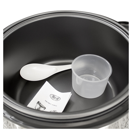 Рисоварка ROAL SR-40 предназначена для приготовления и хранения в подогретом состоянии отварного риса, а также овощей, мяса, рыбы и мучных блюд в суши-барах, ресторанах, кафе и на других предприятиях общественного питания и торговли. Модель оснащена внешней емкостью с устойчивыми опорами, кабелем питания с вилкой, панелью управления с выключателем и светодиодными индикаторами, съемным резервуаром, откидной крышкой с внутренней съемной вставкой, рукояткой и паровыми отверстиями. Корпус выполнен из нержавеющей стали, крышка, рукоятки и опоры – из прочного полимера. В комплект поставки входят мерный стакан и ложка. Особенности: