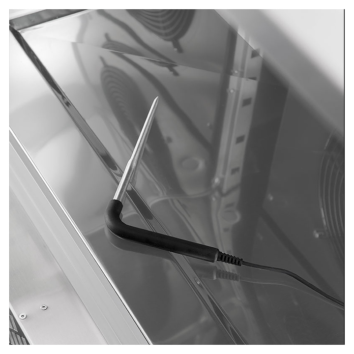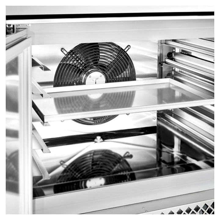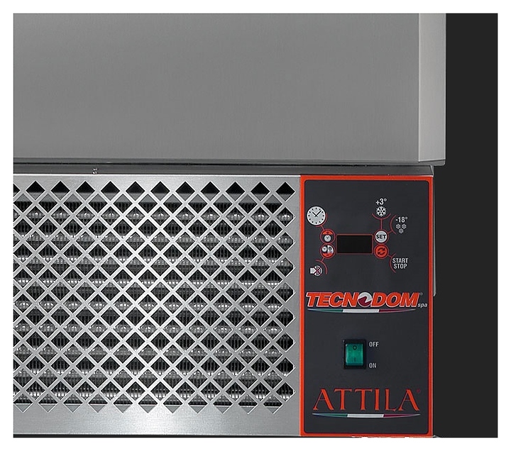 Шкаф шоковой заморозки Tecnodom ATT07 серии Attila предназначен для быстрого охлаждения и заморозки большого объема продукции с сохранением ее первоначальных свойств на на предприятиях общественного питания и торговли. Модель оснащена рабочей камерой с универсальными направляющими для гастроемкостей, распашной дверью, подставкой с встроенным холодильным агрегатом, электронным блоком управления с кнопочной панелью и цифровым дисплеем. Внутренняя и внешняя облицовка камеры, опоры и направляющие выполнены из высококачественной нержавеющей стали, внешняя облицовка основания – из оцинкованной стали, термоизоляция камеры – из залитого под высоким давлением пенополиуретана без содержания опасных хлорфторуглеродов (CFC). В комплект поставки входят термощуп, съемный поддон для сбора конденсата, кабель питания и инструкция по эксплуатации. Особенности: