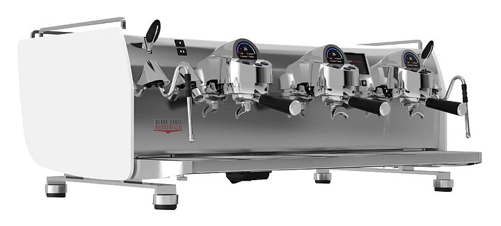 Автоматическая кофемашина Victoria Arduino Maverick Gravimetric Volumetric T3 GR3 220V используется в кофейнях, барах, ресторанах для приготовления эспрессо, капучино и различных кофейных напитков на их основе. Модель оснащена 3 кофейными группами, 2 поворотными кранами подачи пара, краном подачи горячей воды, основной панелью управления с 3 функциональными клавишами, многофункциональным жидкокристаллическим сенсорным дисплеем (touchscreen), а также персональными панелями для каждой группы с 3 функциональными клавишами и жидкокристаллическим дисплеем. Фронтальная и задняя панели корпуса, направляющие по внешнему периметру верхней панели, бойлеры, краны, холдер, логотип на задней панели выполнены из высококачественной нержавеющей стали, боковые панели корпуса – из алюминия, задняя и боковые панели имеют покрытие цвета сияющий белый.