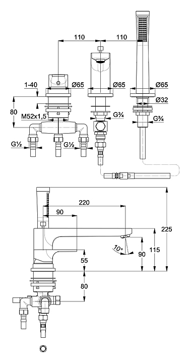Смеситель на борт ванны KLUDI Zenta SL 484480565 на 3 отверстия, хром
