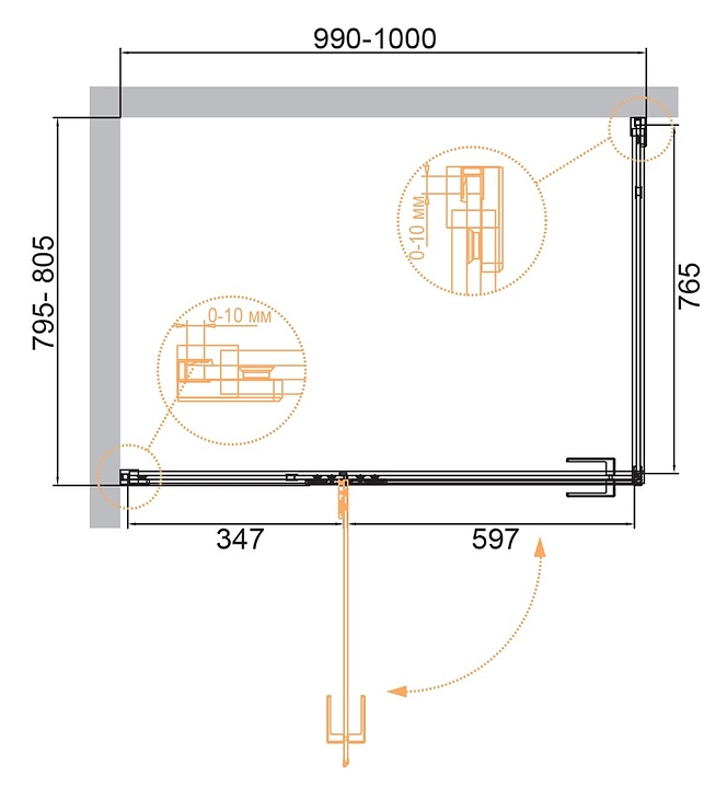 Уголок душевой CEZARES BELLAGIO-AH-1-100/80-C-NERO 100х80х197 см