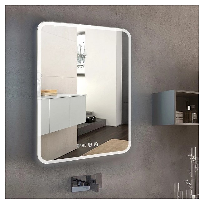 Зеркало с LED-подсветкой Silver Mirrors Stiv neo LED-00002399 68,5х91,5 см с часами и анти-пар