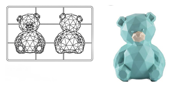 Форма для конфет Martellato MA3014 используется на предприятиях общественного питания и торговли, в частных домах и квартирах. Модель позволяет производить конфеты или шоколад в форме медведя. Геометрическая форма с углублением для задней части и углублением для передней части, поэтому при соединении они образуют полноценный 3D-объект. Аксессуар выполнен из поликарбоната. Дополнительные характеристики: