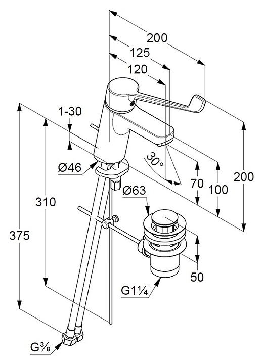 Смеситель медицинский для раковины KLUDI Pure&Easy 372870565 с донным клапаном, хром