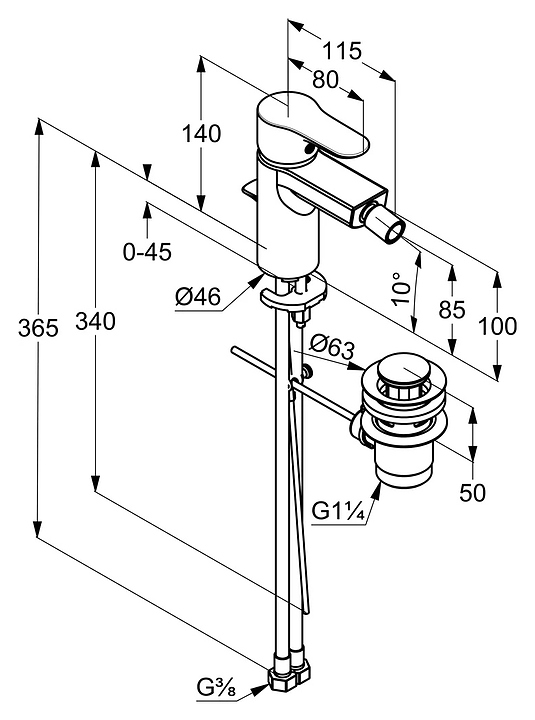 Смеситель для биде KLUDI Objekta 324160575 с донным клапаном, хром