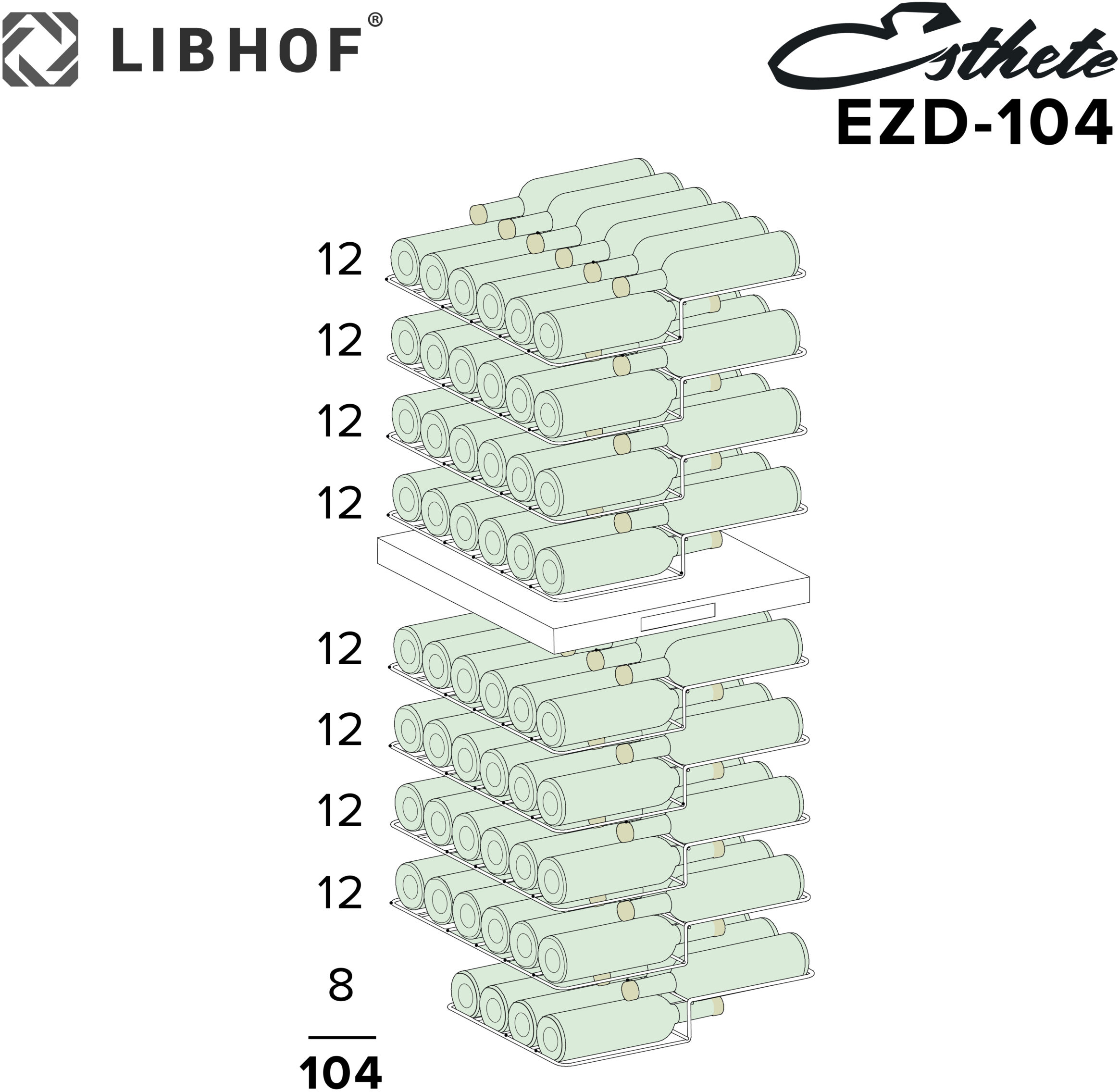 Винный шкаф Libhof Esthete EZD-104 предназначен для хранения при оптимальных условиях бутилированного вина различных сортов в барах, ресторанах, специализированных магазинах, подсобных складских помещениях, а также домашних условиях. Модель оснащена холодильной камерой с 2 независимыми температурными зонами, 9 специальными z-shape полками, съемной цокольной вентиляционной решеткой, запираемой на ключ распашной дверью на внутренних петлях с ручкой, дымчатым обзорным остеклением, сенсорной панелью управления и цифровым дисплеем. Корпус и полки выполнены из металла и устойчивы к воздействию влаги. Особенности: