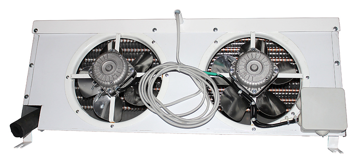 Напольно-потолочная сплит-система АСК-Холод СНп-22 предназначена для поддержания необходимого температурного режима в холодильных камерах на предприятиях пищевой промышленности, общественного питания и торговли. Модель оснащена компрессорно-конденсаторным блоком, который размещается снаружи холодильной камеры и воздухоохладителем внутри камеры, соединенными между собой теплоизолированными медными трубками, по которым циркулирует хладагент и выводится конденсат, а также кабелем питания и управления. Корпус изготовлен из оцинкованной стали белого цвета толщиной от 0,9 до 1,2 мм с полимерным покрытием в защитной пленке, трубы конденсатора и испарителя - из меди, ребра - из алюминиевого сплава. Комплектация: