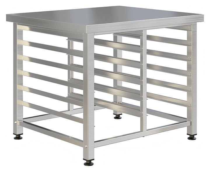 Подставка Restoinox ППКР-2-90/90 предназначена для размещения пароконвектоматов на предприятиях общественного питания и торговли. Модель оснащена регулируемыми по высоте опорами. Разборный каркас выполнен из трубы 40х40 мм нержавеющей стали AISI 430, направляющие и столешница - из нержавеющей стали AISI 430. Дополнительные характеристики: