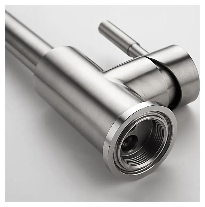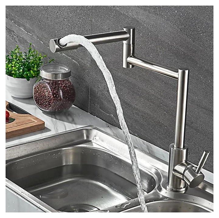Смеситель FASHUNA A54409 предназначен для подачи горячей и холодной воды в кухонных помещениях. Модель оснащена складным изливом для широких моек и керамическим картриджем, обеспечивающим плавный ход рычага смесителя, контроль и точность при выборе напора и температуры воды. Изделие выполнено из нержавеющей стали, которая отличается прочностью, долговечностью и устойчивостью к коррозии. В комплект поставки входят подводка и гайка для крепления. Дополнительные характеристики: