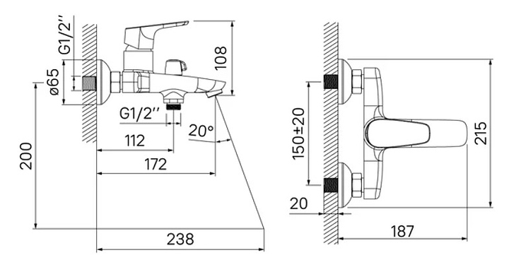 Смеситель для ванны и душа настенный IDDIS Zodiac ZODSB02i02