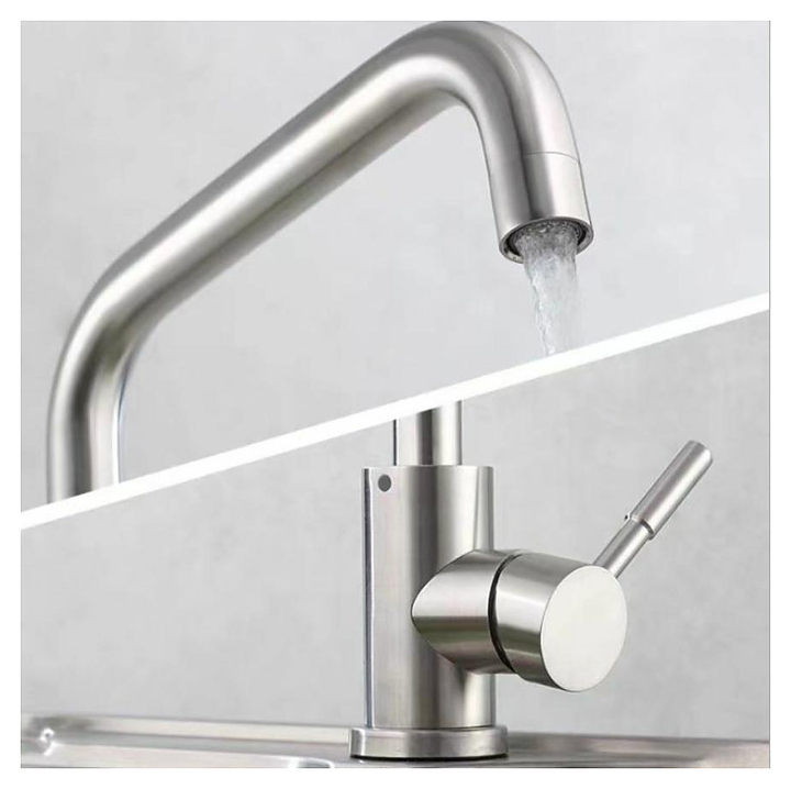 Смеситель FASHUN A54201-7 предназначен для подачи горячей и холодной воды в кухонных помещениях. Модель оснащена керамическим картриджем, обеспечивающим плавный ход рычага смесителя, контроль и точность при выборе напора и температуры воды. Изделие выполнено из нержавеющей стали, которая отличается прочностью, долговечностью и устойчивостью к коррозии. В комплект поставки входят подводка и гайка для крепления. Дополнительные характеристики: