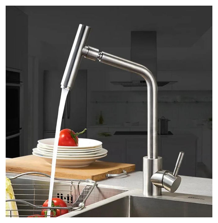 Смеситель FASHUN A54001-A предназначен для подачи горячей и холодной воды в кухонных помещениях. Модель оснащена изливом с подвижной верхней частью и керамическим картриджем, обеспечивающим плавный ход рычага смесителя, контроль и точность при выборе напора и температуры воды. Изделие выполнено из нержавеющей стали, которая отличается прочностью, долговечностью и устойчивостью к коррозии. В комплект поставки входят подводка и гайка для крепления. Дополнительные характеристики: