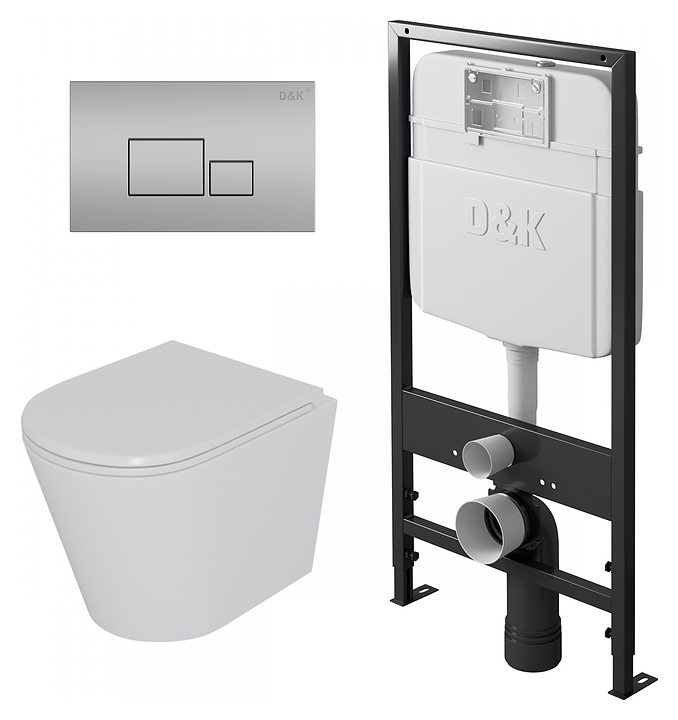 Унитаз подвесной с инсталляцией, сиденьем и клавишей смыва D&K DS1021604 безободковый, белый