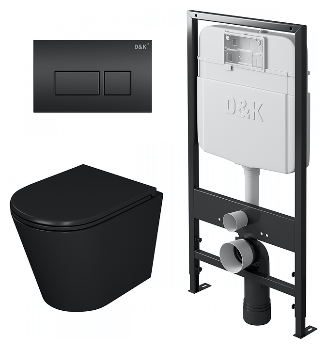 Унитаз подвесной с инсталляцией, сиденьем и клавишей смыва D&K DS1022501 безободковый, черный