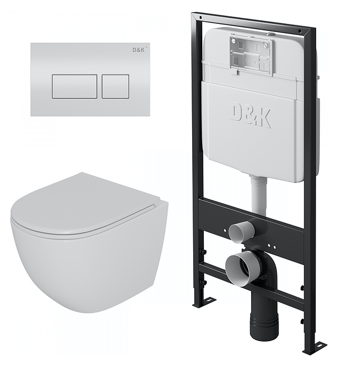 Унитаз подвесной с инсталляцией, сиденьем и клавишей смыва D&K Matrix DS1391601 безободковый, белый
