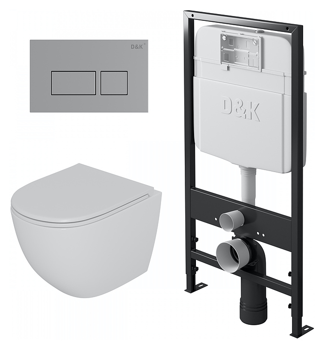Унитаз подвесной с инсталляцией, сиденьем и клавишей смыва D&K Matrix DS1391605 безободковый, белый