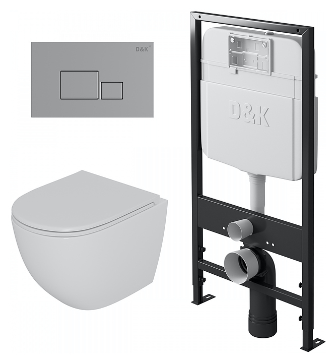 Унитаз подвесной с инсталляцией, сиденьем и клавишей смыва D&K Matrix DS1391606 безободковый, белый
