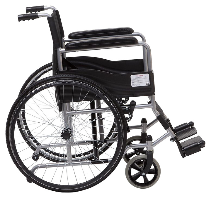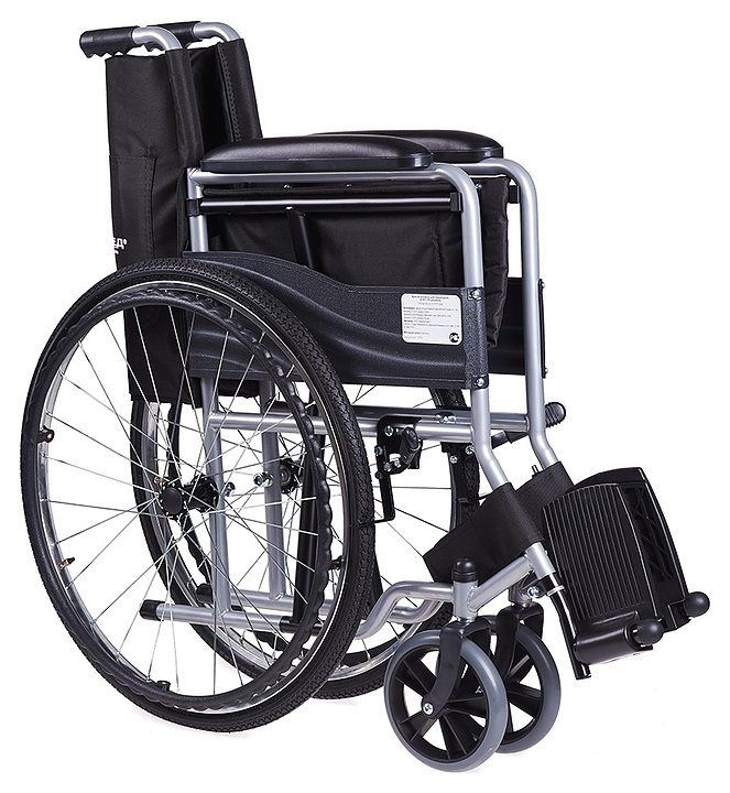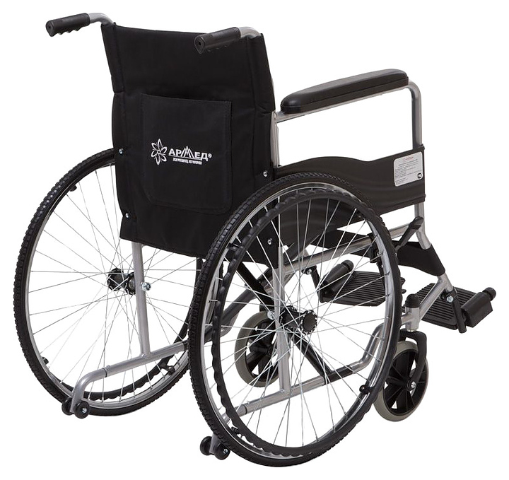Кресло-коляска Армед H007 предназначено для передвижения в сидячем положении людей с повреждениями опорно-двигательной системы и ослабленных из-за болезни пациентов преимущественно на улице во время прогулок, а также в различных помещениях при необходимости. Модель оснащена 2 небыстросъемными задними колесами с пневматическими шинами на металлических ободах со спицами, 2 кольцеобразными рукоятками для самостоятельного перемещения пользователя, 2 цельнолитыми поворотными фронтальными колесами и 2 ведущими рукоятками для сопровождающего. Каркас выполнен из металлического сплава с антикоррозийным покрытием серой и черной порошковой краской, спинка, сиденье и ремни – из устойчивой к растяжению водоотталкивающей нейлоновой ткани черного цвета, подножки и рукоятки – из полимеров черного цвета, упаковка – картонная коробка. В комплект поставки входят универсальный ключ, набор крепежа, заводская упаковка и инструкция по эксплуатации. Особенности: