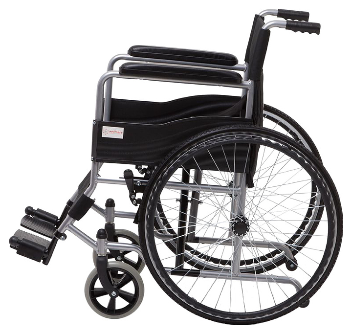 Кресло-коляска Армед H007 предназначено для передвижения в сидячем положении людей с повреждениями опорно-двигательной системы и ослабленных из-за болезни пациентов в различных помещениях, а также на улице во время недолгих прогулок по дорожкам с твердым покрытием. Модель оснащена 2 небыстросъемными задними колесами с цельнолитыми шинами на металлических ободах со спицами, 2 кольцеобразными рукоятками для самостоятельного перемещения пользователя, 2 цельнолитыми поворотными фронтальными колесами и 2 ведущими рукоятками для сопровождающего. Каркас выполнен из металлического сплава с антикоррозийным покрытием серой и черной порошковой краской, спинка, сиденье и ремни – из устойчивой к растяжению водоотталкивающей нейлоновой ткани черного цвета, подножки и рукоятки – из полимеров черного цвета, упаковка – картонная коробка. В комплект поставки входят универсальный ключ, набор крепежа, заводская упаковка и инструкция по эксплуатации. Особенности:
