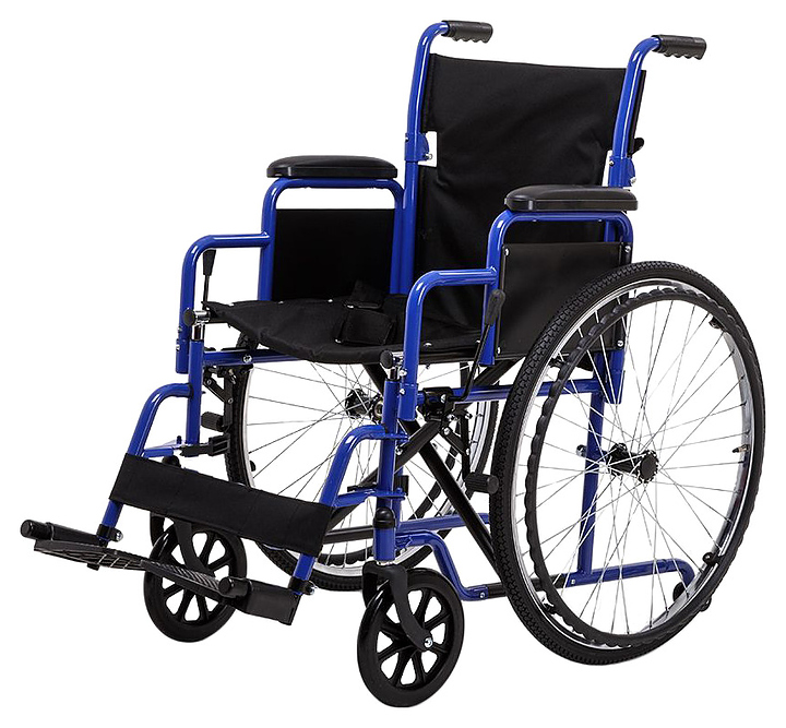 Кресло-коляска Армед H035 предназначено для передвижения в сидячем положении людей с повреждениями опорно-двигательной системы и ослабленных из-за болезни пациентов в различных помещениях, а также на улице во время недолгих прогулок по дорожкам с твердым покрытием. Модель оснащена 2 небыстросъемными задними колесами с цельнолитыми шинами на металлических ободах со спицами, 2 кольцеобразными рукоятками для самостоятельного перемещения пользователя, 2 цельнолитыми поворотными фронтальными колесами и 2 складными ведущими рукоятками для сопровождающего. Каркас выполнен из стали с антикоррозийным покрытием синей и черной порошковой краской, спинка, сиденье и ремни – из устойчивой к растяжению водоотталкивающей нейлоновой ткани черного цвета, подножки и рукоятки – из полимеров черного цвета, упаковка – картонная коробка. В комплект поставки входят универсальный ключ, набор крепежа, заводская упаковка и инструкция по эксплуатации. Особенности: