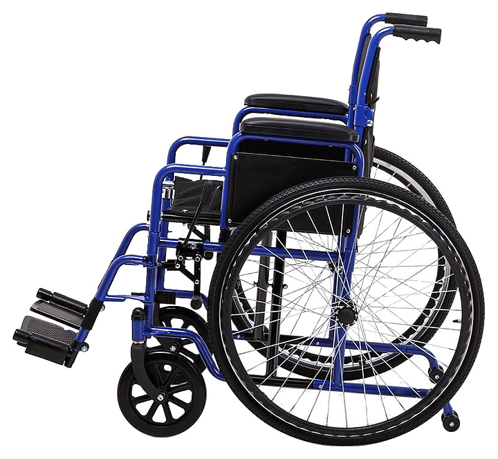 Кресло-коляска Армед H035 предназначено для передвижения в сидячем положении людей с повреждениями опорно-двигательной системы и ослабленных из-за болезни пациентов в различных помещениях, а также на улице во время недолгих прогулок по дорожкам с твердым покрытием. Модель оснащена 2 небыстросъемными задними колесами с цельнолитыми шинами на металлических ободах со спицами, 2 кольцеобразными рукоятками для самостоятельного перемещения пользователя, 2 цельнолитыми поворотными фронтальными колесами и 2 складными ведущими рукоятками для сопровождающего. Каркас выполнен из стали с антикоррозийным покрытием синей и черной порошковой краской, спинка, сиденье и ремни – из устойчивой к растяжению водоотталкивающей нейлоновой ткани черного цвета, подножки и рукоятки – из полимеров черного цвета, упаковка – картонная коробка. В комплект поставки входят универсальный ключ, набор крепежа, заводская упаковка и инструкция по эксплуатации. Особенности: