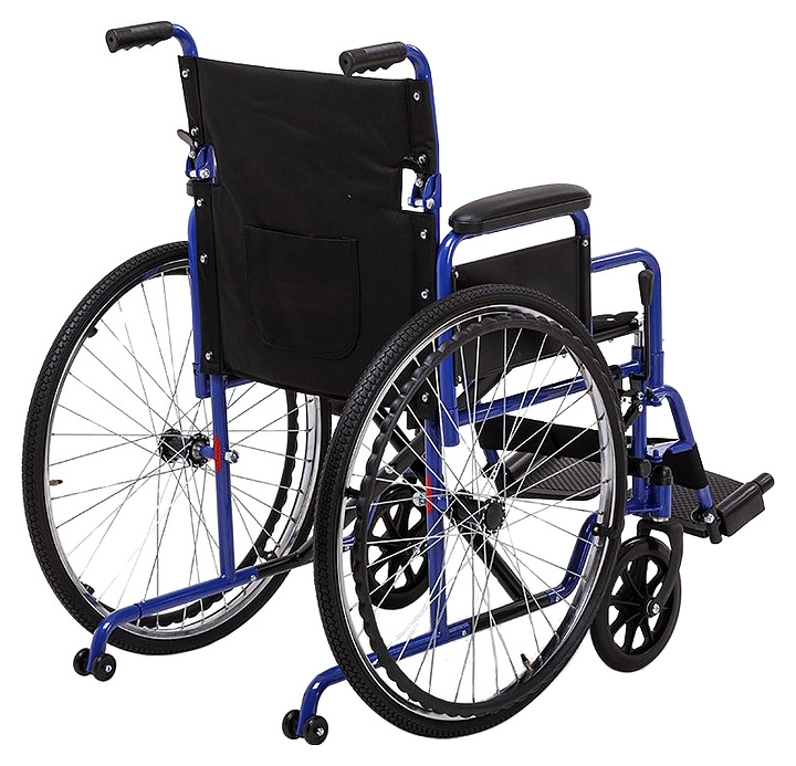 Кресло-коляска Армед H035 предназначено для передвижения в сидячем положении людей с повреждениями опорно-двигательной системы и ослабленных из-за болезни пациентов в различных помещениях, а также на улице во время недолгих прогулок по дорожкам с твердым покрытием. Модель оснащена 2 небыстросъемными задними колесами с цельнолитыми шинами на металлических ободах со спицами, 2 кольцеобразными рукоятками для самостоятельного перемещения пользователя, 2 цельнолитыми поворотными фронтальными колесами и 2 складными ведущими рукоятками для сопровождающего. Каркас выполнен из стали с антикоррозийным покрытием синей и черной порошковой краской, спинка, сиденье и ремни – из устойчивой к растяжению водоотталкивающей нейлоновой ткани черного цвета, подножки и рукоятки – из полимеров черного цвета, упаковка – картонная коробка. В комплект поставки входят универсальный ключ, набор крепежа, заводская упаковка и инструкция по эксплуатации. Особенности: