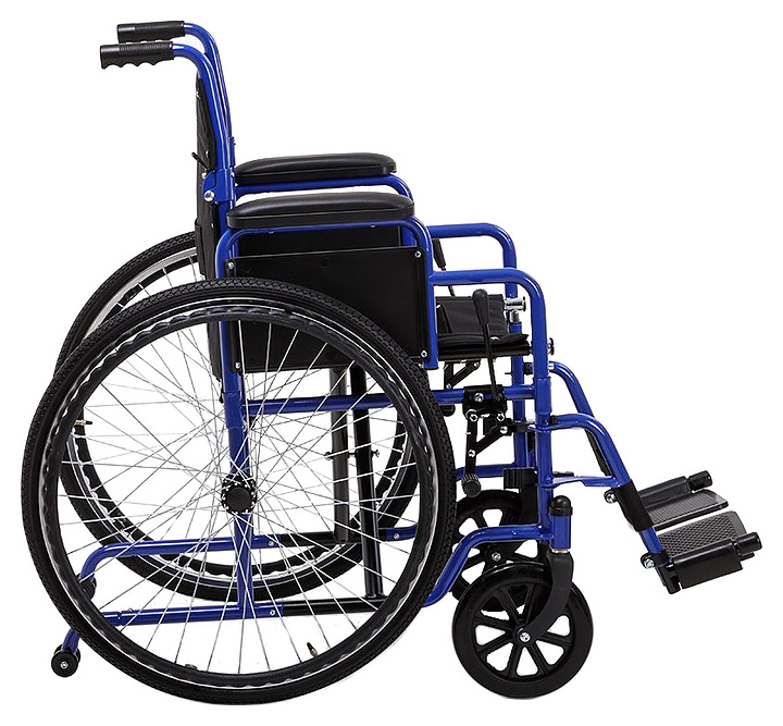 Кресло-коляска Армед H035 предназначено для передвижения в сидячем положении людей с повреждениями опорно-двигательной системы и ослабленных из-за болезни пациентов в различных помещениях, а также на улице во время недолгих прогулок по дорожкам с твердым покрытием. Модель оснащена 2 небыстросъемными задними колесами с цельнолитыми шинами на металлических ободах со спицами, 2 кольцеобразными рукоятками для самостоятельного перемещения пользователя, 2 цельнолитыми поворотными фронтальными колесами и 2 складными ведущими рукоятками для сопровождающего. Каркас выполнен из стали с антикоррозийным покрытием синей и черной порошковой краской, спинка, сиденье и ремни – из устойчивой к растяжению водоотталкивающей нейлоновой ткани черного цвета, подножки и рукоятки – из полимеров черного цвета, упаковка – картонная коробка. В комплект поставки входят универсальный ключ, набор крепежа, заводская упаковка и инструкция по эксплуатации. Особенности: