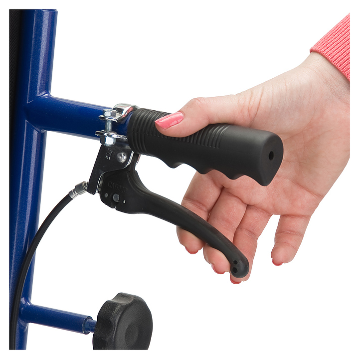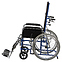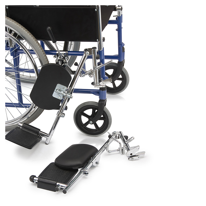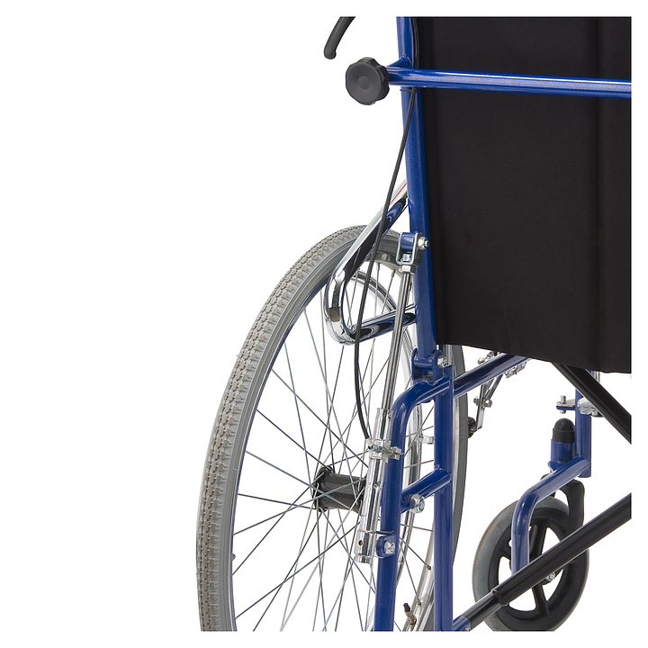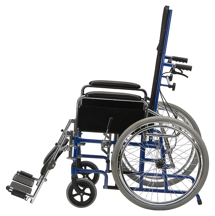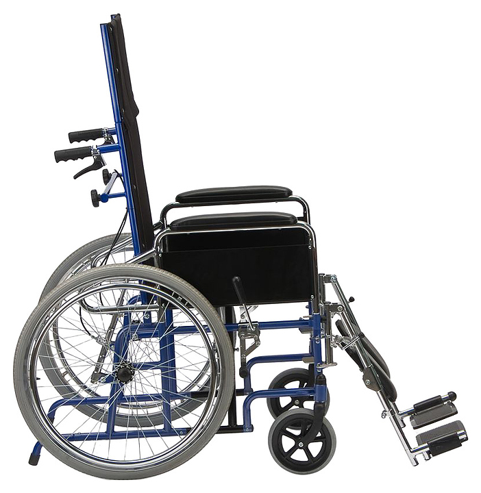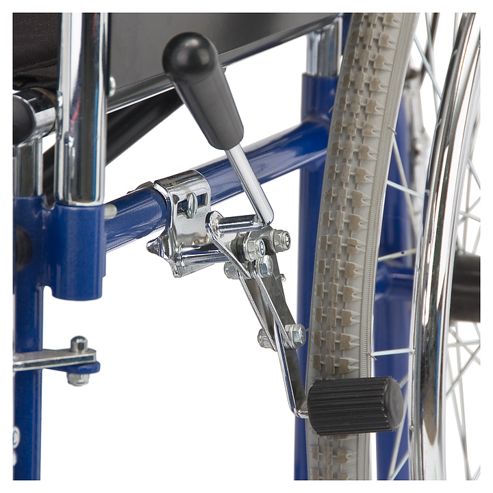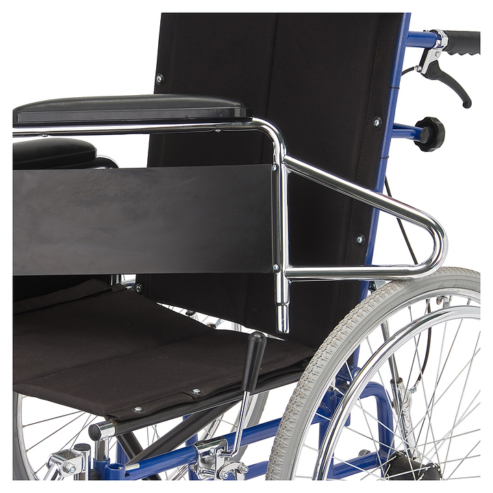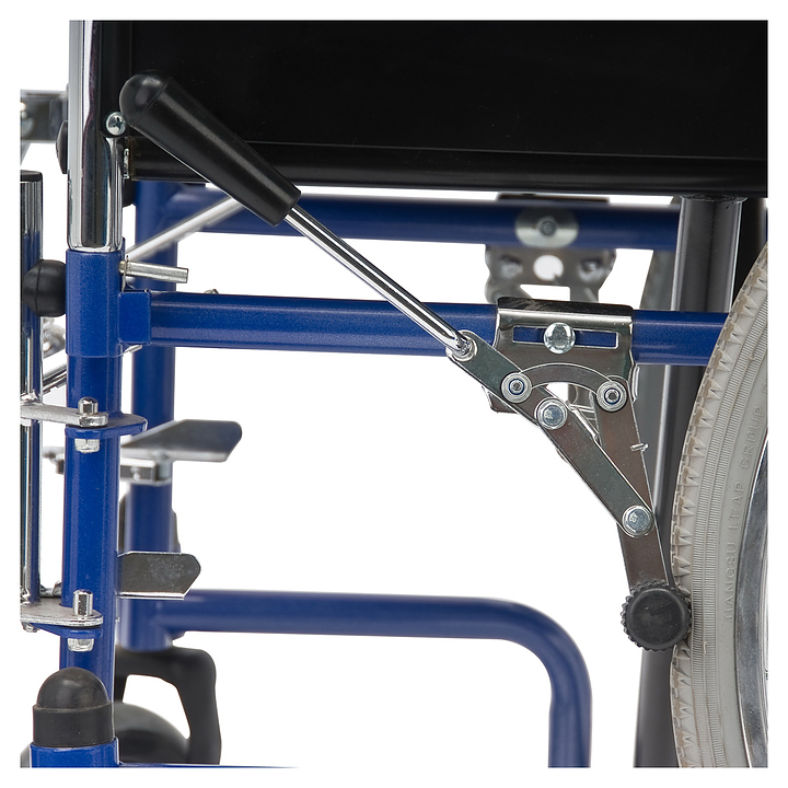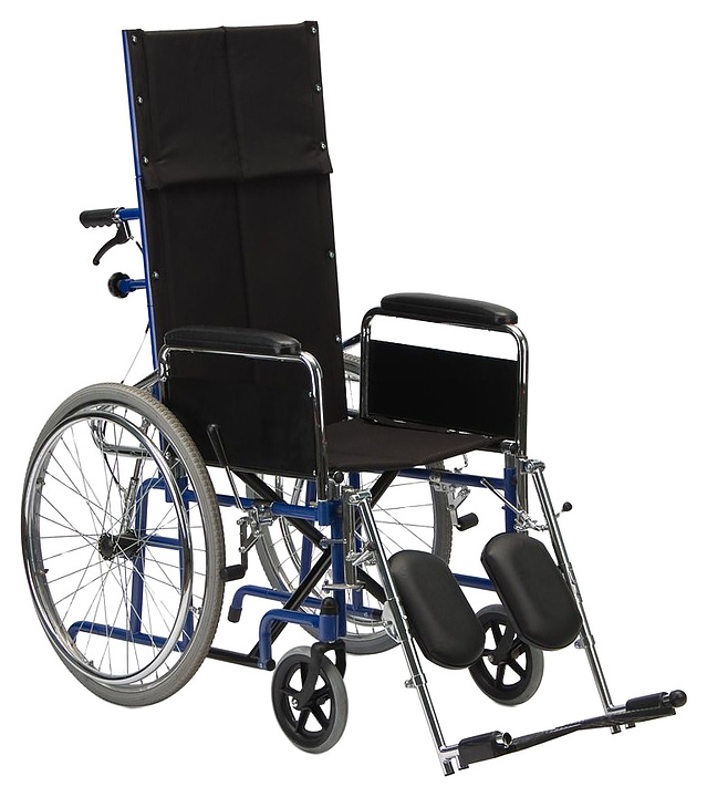 Кресло-коляска Армед H008 предназначено для передвижения в сидячем положении людей с повреждениями опорно-двигательной системы и ослабленных из-за болезни пациентов преимущественно на улице во время прогулок, а также в различных помещениях при необходимости. Модель оснащена 2 небыстросъемными задними колесами с пневматическими шинами на металлических ободах со спицами, 2 кольцеобразными рукоятками для самостоятельного перемещения пользователя, 2 цельнолитыми поворотными фронтальными колесами и 2 ведущими рукоятками для сопровождающего. Рама выполнена из металлического сплава с антикоррозийным покрытием синей и черной порошковой краской, каркас подножек, подлокотники и приводные рукоятки – из металлического сплава с серебристой поверхностью, сиденье, спинка и подголовник – из устойчивой к растяжению водоотталкивающей нейлоновой ткани черного цвета, накладки на подлокотниках и икроножные опоры – из поролона с обивкой черным кожзаменителем, подножки и рукоятки – из полимеров черного цвета, упаковка – картонная коробка. В комплект поставки входят универсальный ключ, набор крепежа, заводская упаковка и инструкция по эксплуатации. Особенности: